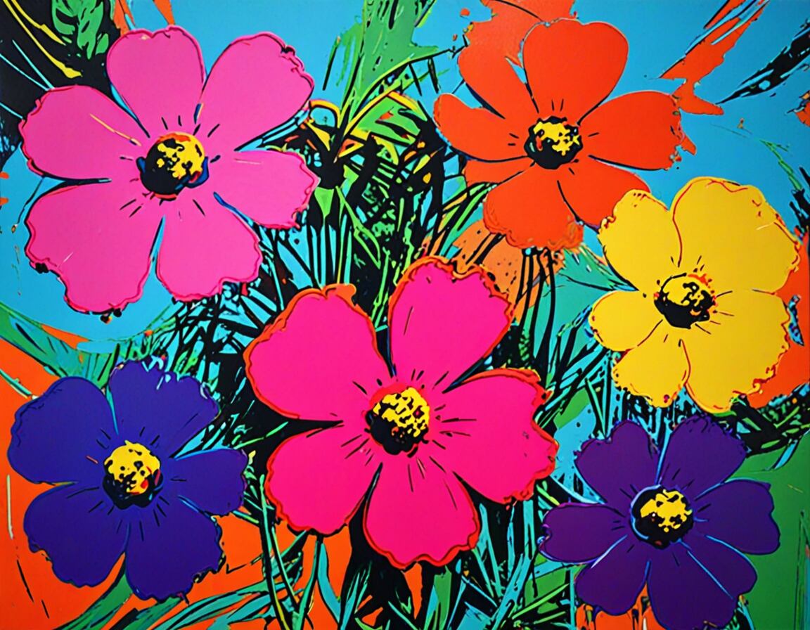 この作品は、アンディ・ウォーホルの「Flowers」シリーズを思い起こさせます。ウォーホルは、日常のオブジェクトやシンボルを大胆な色使いとシンプルな形で表現することで知られています。この作品もその特徴をよく表していますね。