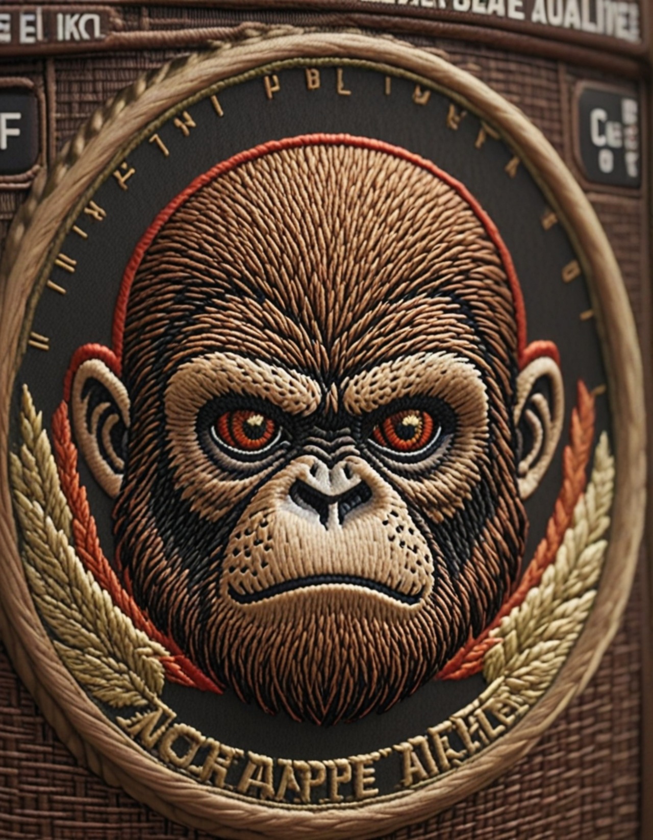 この画像はとてもユニークで、ユーモラスなアートです。リアルな質感で描かれたサルのようなキャラクターが、ジーンズジャケットを着ているのが特徴的ですね。目のディテールが特に印象的で、キャラクターに生命感を与えています。ジャケットのデザインやパッチも、個性を感じさせるポイントです。