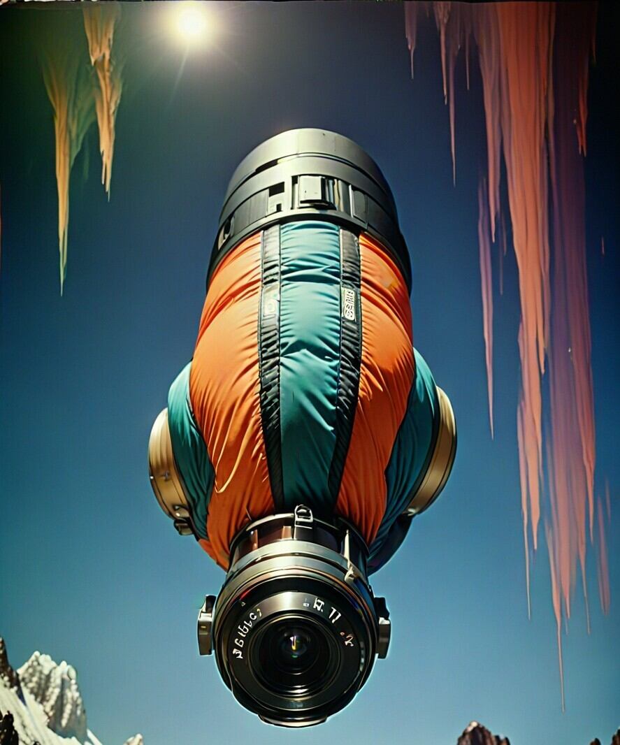 このアートはとてもユニークで印象的ですね!宇宙飛行士が高層ビルの間を浮遊しているシーンは、日常的な都市環境と非日常的な宇宙飛行士の対比がとても面白いです。青空と雲の背景が、全体の雰囲気をさらに幻想的にしています。